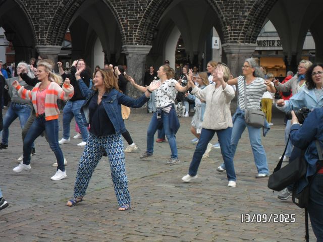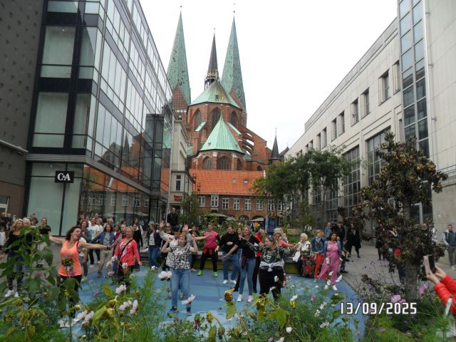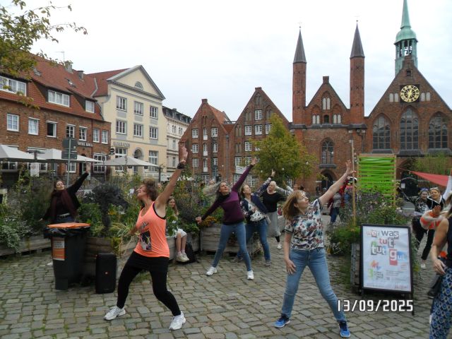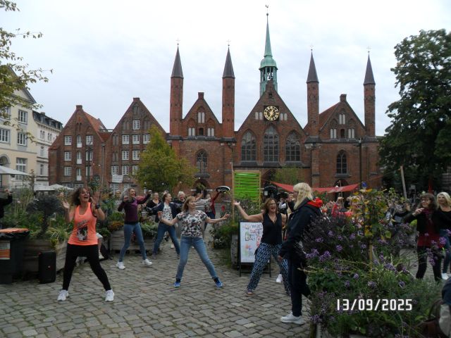 Ganz viele Hits der 80er-Jahre gibt es in einem siebenminütigen Medley, mit der Tanzlehrerin Laura Llopart am Samstag, 13. September, zu einem Flashmob in der Lübecker Innenstadt lädt. Getanzt wird mit ungefähr 40 Teilnehmern an vier verschiedenen Standorten. Los geht es um 12.30 Uhr am Koberg, von wo es dann weitergeht zum Schrangen, Kohlmarkt und Holstentor. Passanten und Zuschauer sind ausdrücklich eingeladen, mitzutanzen.