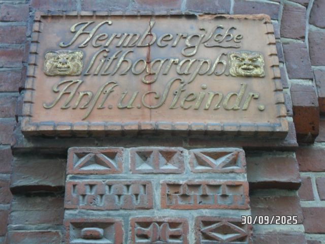 Der Kaufmann Carl August Jarck wurde 1803 der erste preußische Konsul in Lübeck. Zur Kennzeichnung des Hauses als Konsulat wurde an ihm das preußische Wappen, der friederizianische fliegende schwarze Adler mit Zepter und Schwert, angebracht, das heute noch über der Haupttür des später erbauten Hermbergschen Hauses erhalten ist. Einen besonderen Schmuck besitzt das Haus an den beiden Firmenschildern zur rechten und linken des Haupteingangs auf den angedeuteten Konsolen der hier das Treppenhausfenster flankierenden flachen Pfeiler. Sie wurden in Klinker gegossen und gebrannt.